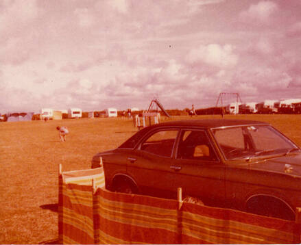 This is the only photo I can find of my Mum and Dad's car. If I remember rightly it was taken in the summer of 1975 on a caravan site on the Isle of Wight. You can just see the top of my head behind the windbreak (I was peeling the potatoes for dinner lol)